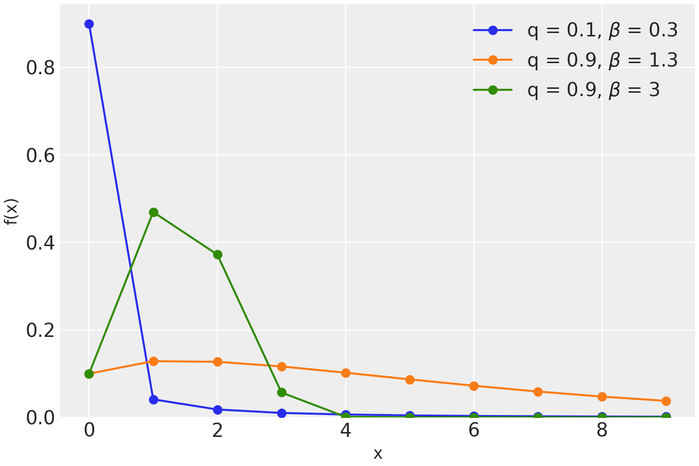 \[f(x \mid q, \beta) = q^{x^{\beta}} - q^{(x + 1)^{\beta}}\]