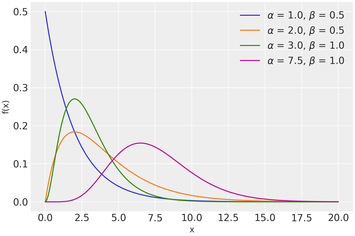 Here, the gamma distribution is parameterized by shape (alpha) and rate (beta).